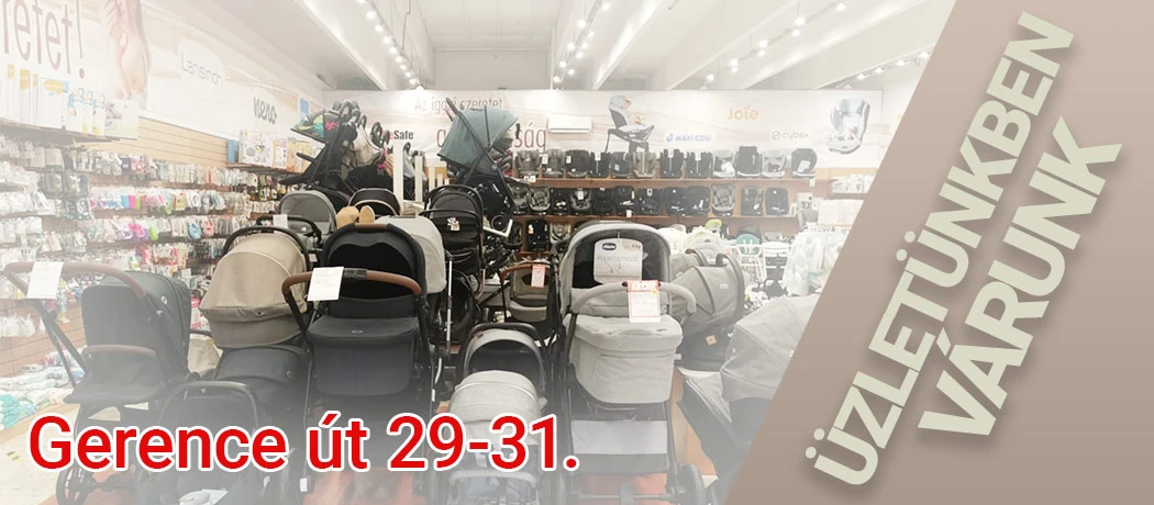 Webáruházunkban rengeteg termék található, de amennyiben módjában áll látogasson el győri bababoltunkba, ahol több, mint 300 négyzetméteren bőséges árukínálattal várjuk.