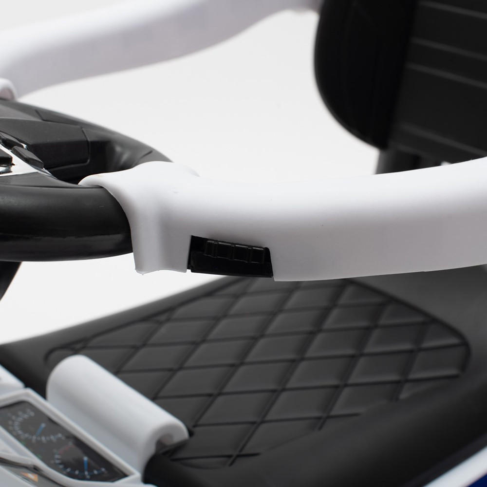 Bébitaxi Baby Mix MENTÕAUTÓ. A tökéletes kidolgozás és az olyan részletek, mint a kerekek, lámpák vagy a karosszériaforma, mindenki figyelmét felkeltik, és gyorsan kedvenc játékává válnak. Minőségi anyagokból készült, hangpanellel felszerelt. Remek és biztonságos játék. A játék alakja segít a gyermek motoros képességeinek fejlesztésében, amikor tanul járni. A hátsó speciális zárnak köszönhetően versenyzője védett a felborulás ellen. A vezetőrúd, a kartartó és a lábtartó eltávolítható. 2 db 1,5 V-os AA elemekre működik, nem a csomagolás része
