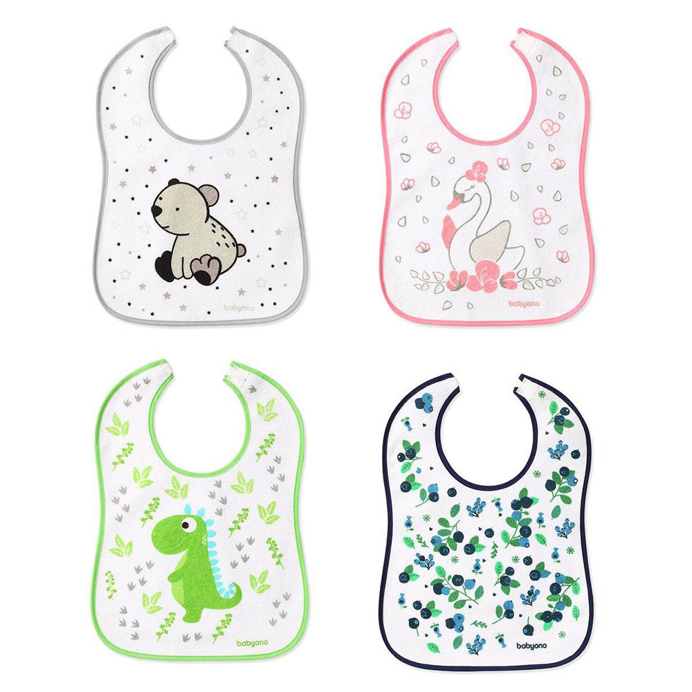 Kiváló minőségű, 100% pamut frottír anyag. A vízálló réteg védi a ruhát a szennyeződéstől és a nedvességtől. Kényelmes és praktikus tépőzáras rögzítés.