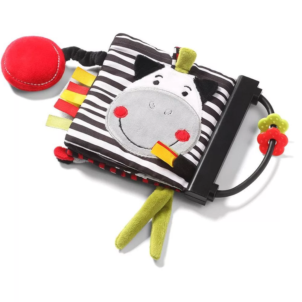 A könyvecske új készségek elsajátítását teszi lehetővé, a fogás gyakorlásától kezdve az íny munkájának serkentésén a rágókán, a számolás megtanulásáig és a különféle tárgyi textúrák tanulmányozásáig.