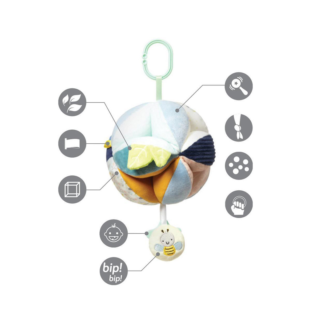 Puha fejlesztő labda kontrasztos színekkel. Fejleszti a kognitív képességeket, kontrasztos színei már az újszülött baba figyelmét is felkelti.