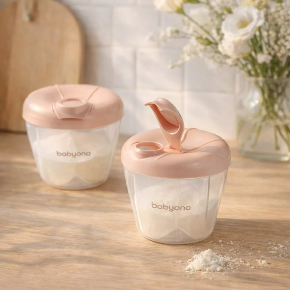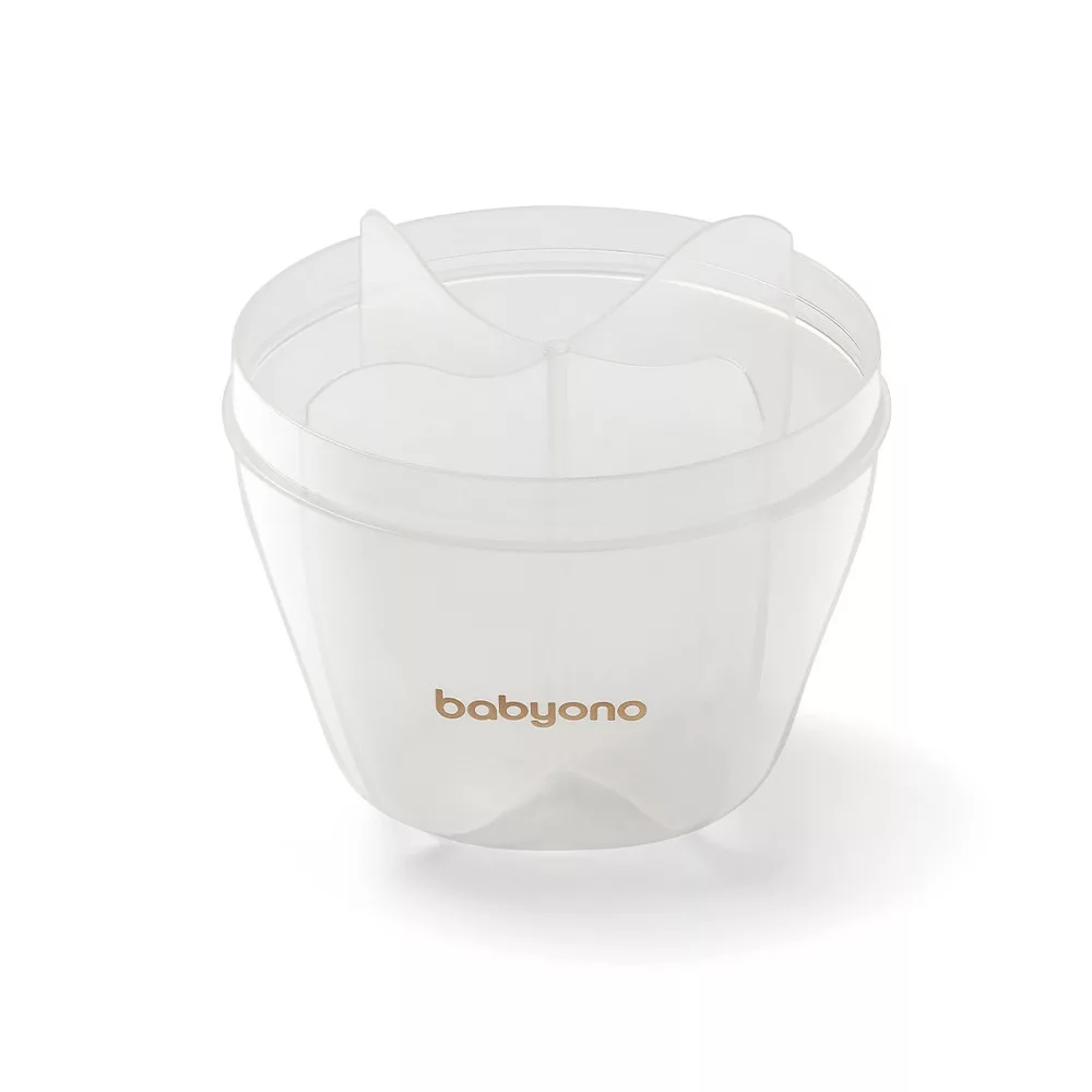 Tápszeres tartály por állagú tápszerhez. A négy kamrás tartály lehetővé teszi négy étkezéshez szükséges por kimérését és tárolását - egy rekeszben 8 mérőkanálnyi port lehet elhelyezni. A tartalmat szorosan takaró fedél forgó rendszerrel van felszerelve, hogy megkönnyítse az adagolást számodra.