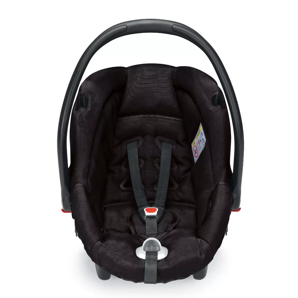 A Techno babakocsi textilszettje tartalmazza ennek a fekete huzatú hordozónak a textil kiegészítőit: a babakocsi szett színével azonos színű vállpárnákat, napellenzőt (többpozíciójú, levehető naptető) és szűkítőt (anatómiailag formázott szűkítőbetét háttámasszal).