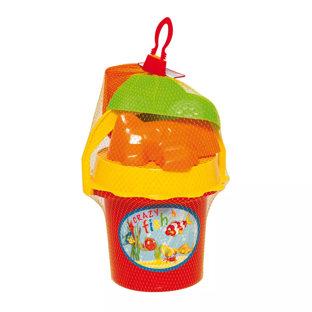 Remek kezdő szett lehet ebből a készletből egy kisgyermek számára. Komplett készlet mely tartalmazza a hullámos mintázatú homokozó vödröt, a szitát mely segít megszűrni a homokot a nagyobb daraboktól, és a formázókat.