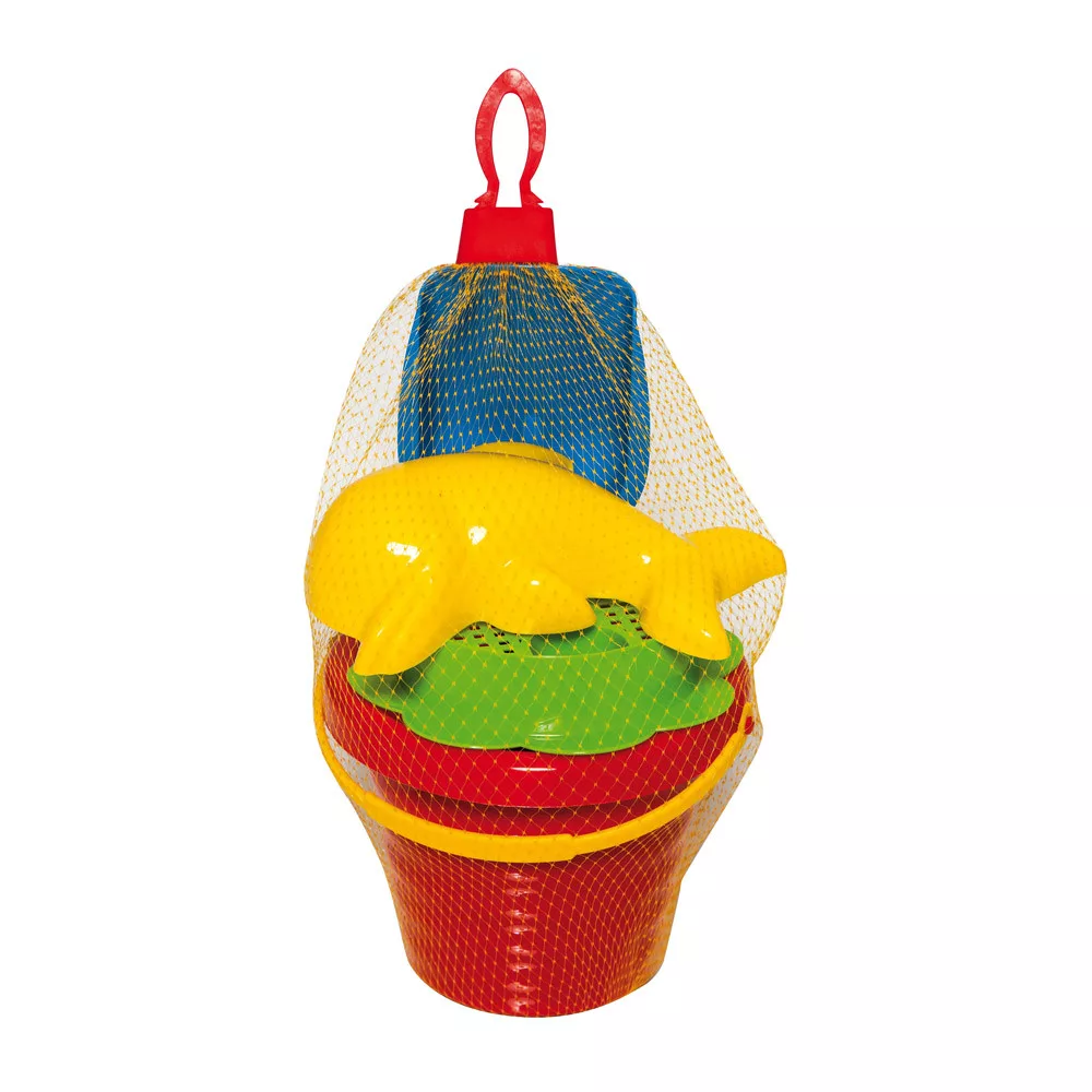 Remek kezdő szett lehet ebből a készletből egy kisgyermek számára. Komplett készlet mely tartalmazza a hullámos mintázatú homokozó vödröt, a szitát mely segít megszűrni a homokot a nagyobb daraboktól, és a formázókat.