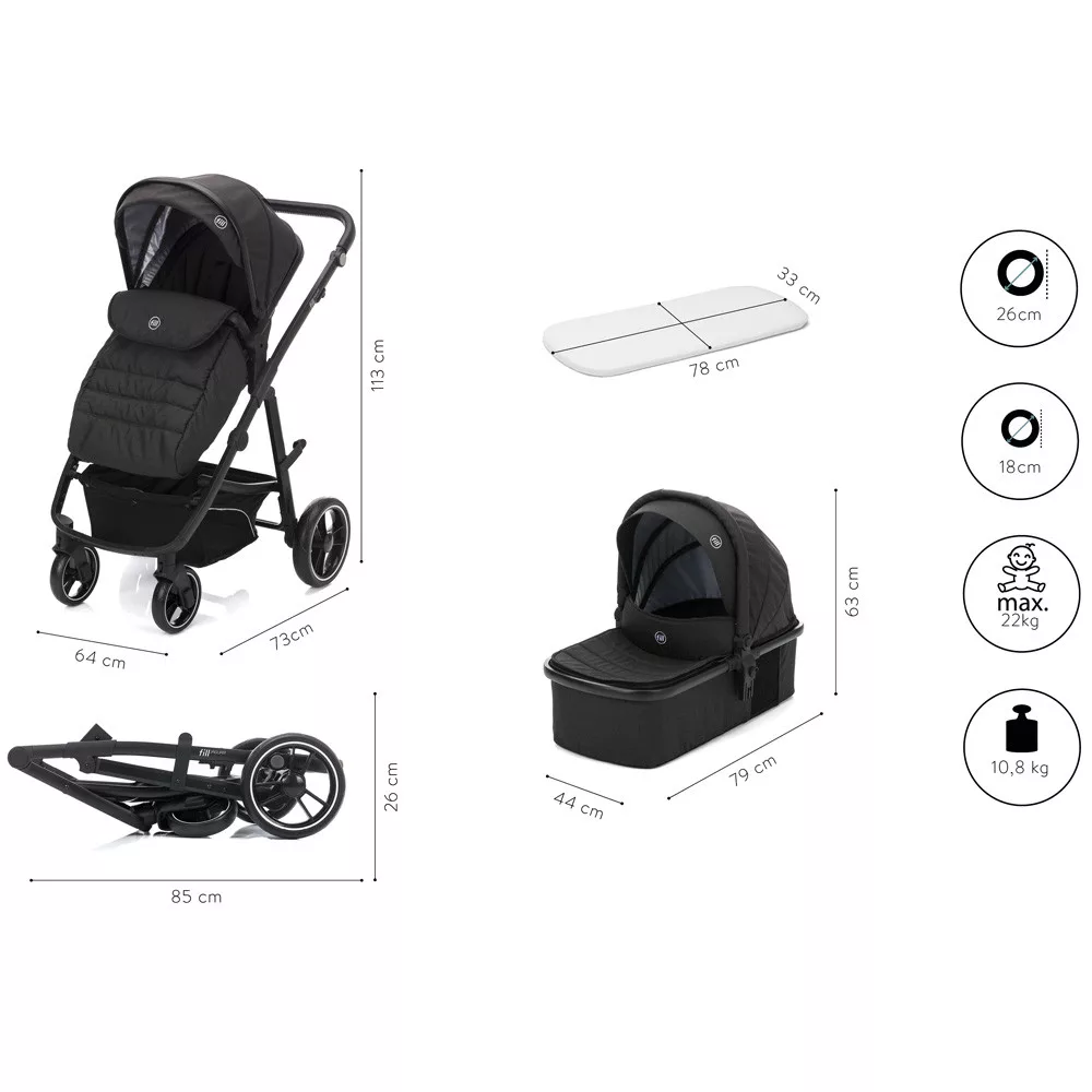 A Fill Jaguar babakocsi szett mindent tartalmaz, amire szüksége van, hogy kényelmesen elkísérhesse gyermekét – az első napoktól az izgalmas első lépésekig.