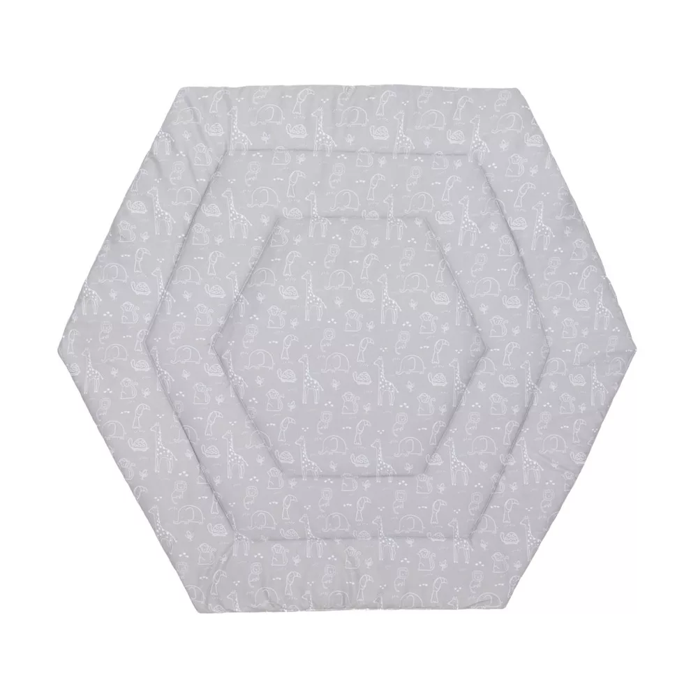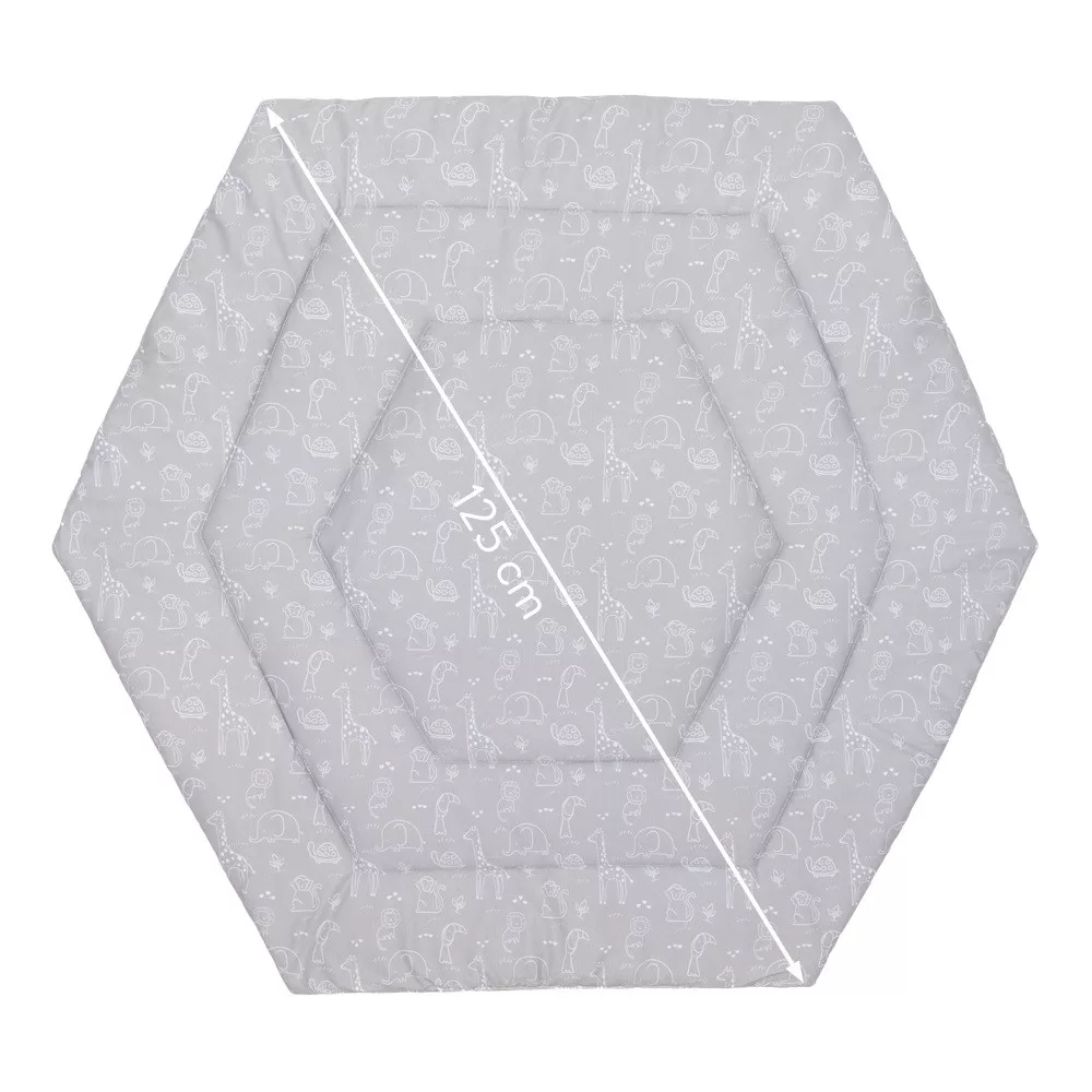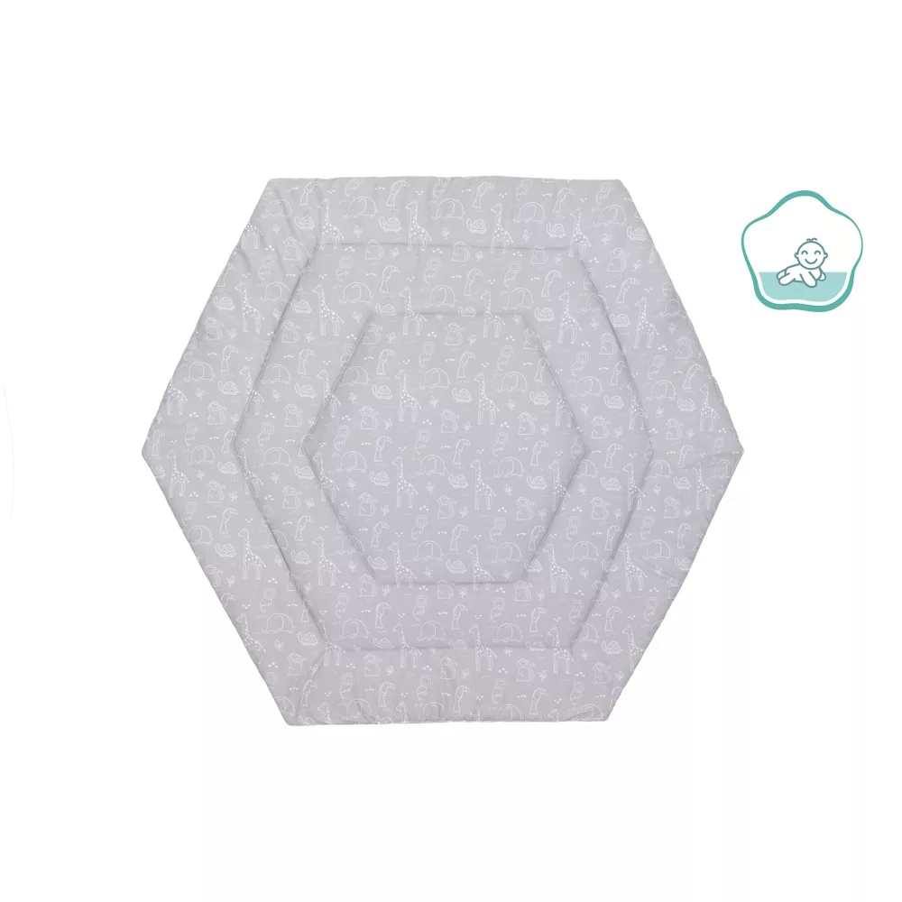 A betét különösen puha és bújós. Ezzel az ennivalóan puha járóka betéttel garantáltan jól érzi majd magát gyermeke. Minden 124 cm átmérőjű hatszögletű járókához alkalmas. A külső anyag 100% pamutból készült, és poliészterrel van töltve. Csak a betét teszi teljessé és kényelmessé a járókát. A járókabetét igény szerint 30°C-on mosható.