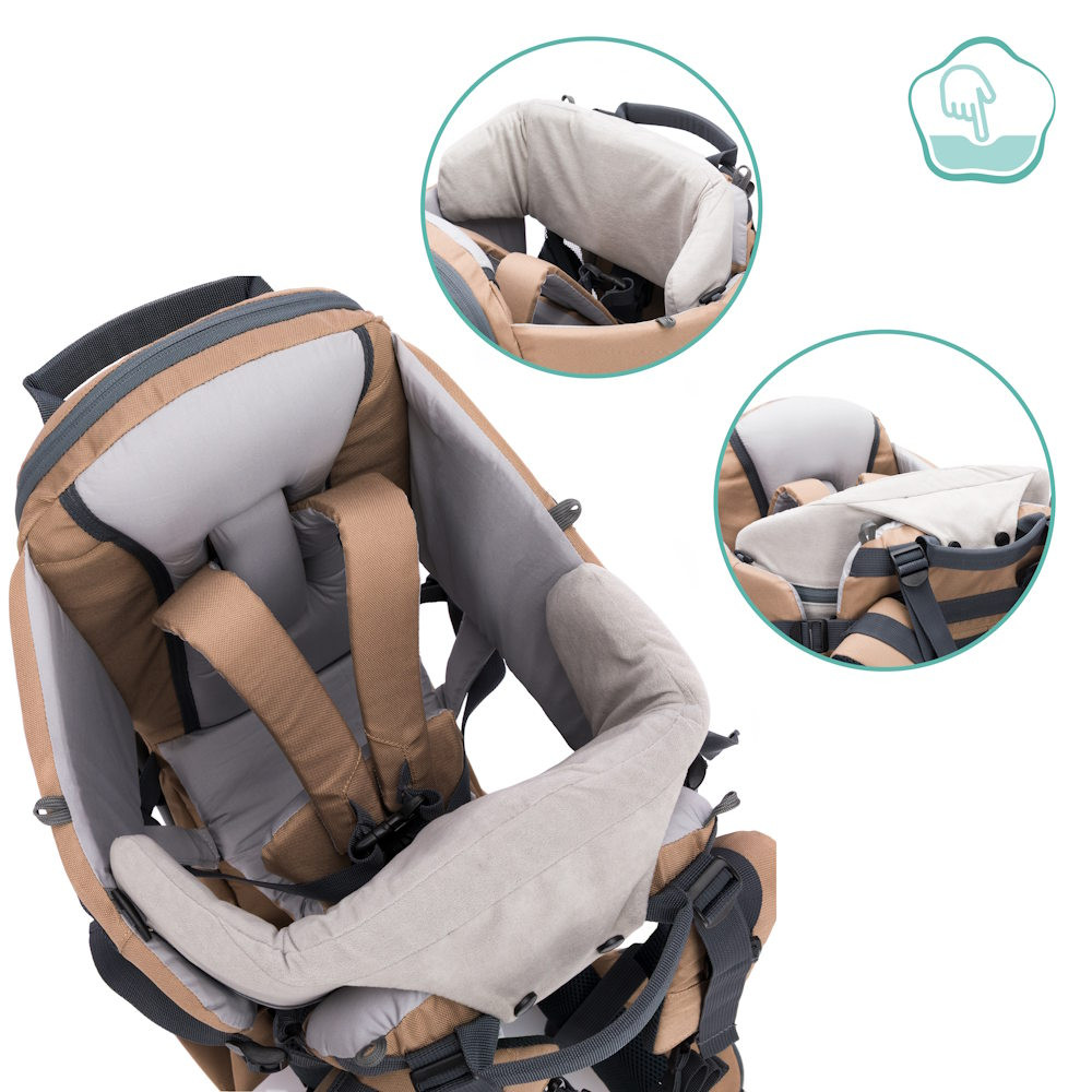 A hordozó legfeljebb 20 kg súlyig terhelhető, és többek között elegendő tárolórekeszt kínál, hogy minden kéznél legyen egy stresszmentes kiránduláshoz.
