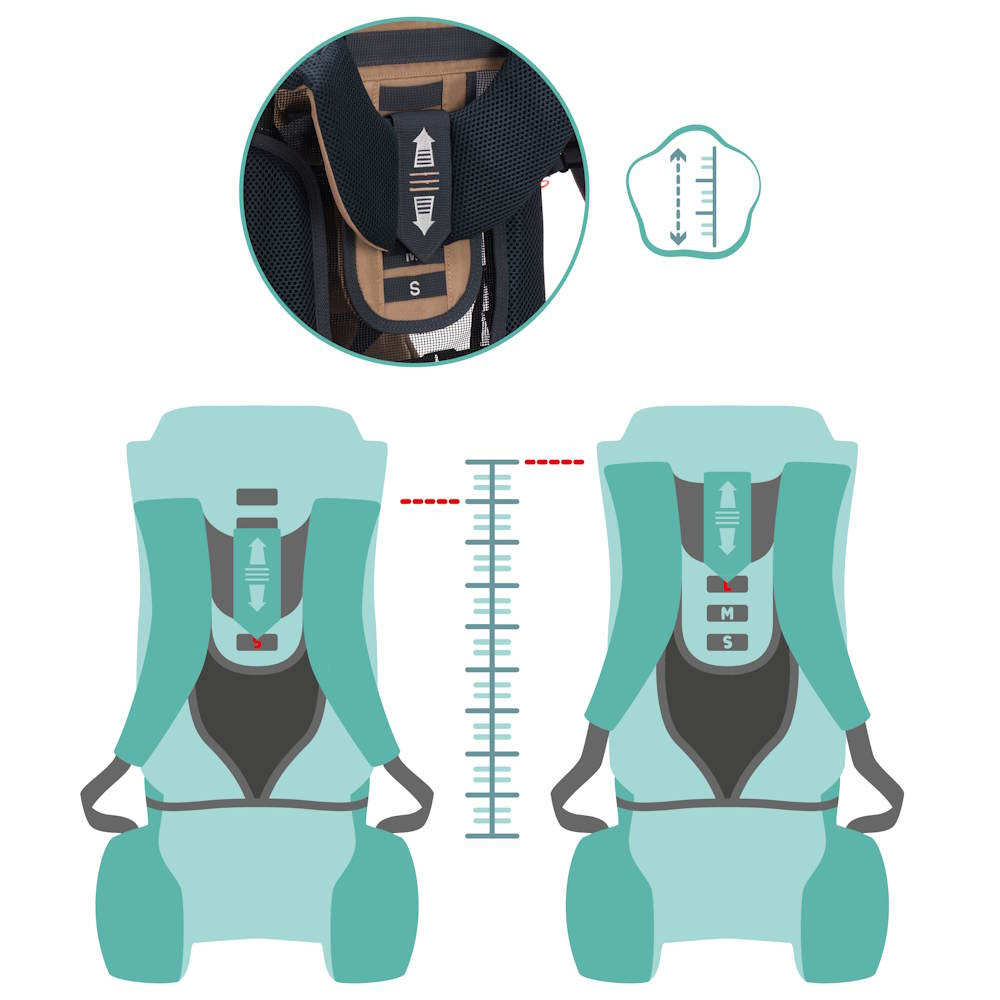 Az állítható és jól párnázott fogantyúk védik a vállakat, a csípőöv pedig megakadályozza, hogy a gyermek teljes terhe a hordozó hátára nehezedjen.