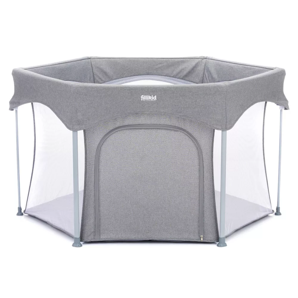 A házban, lakásban gyakran vannak olyan veszélyes dolgok, amelyek mászkáláskor, sétáláskor veszélyt jelenthetnek az aktív babákra. Ez a Fillikid hatszögletű járóka nagyobb biztonságot nyújt kis kedvesének. A párnázott alap hangulatos játékfelületet és extra meleget biztosít a hideg járólap vagy parketta ellen. A járóka két egyszerű lépésben kinyitható és összecsukható. A szállítótáskával könnyedén összepakolhatod és magaddal viheted mindenhova, hogy babád mindig biztonságban tudjon benne játszani. A hálós oldalfalaknak köszönhetően szemmel tarthatod babádat, és a levegő keringhet a járókában. Oldalán cipzár található, így gyermeke felügyelet mellett önállóan tud ki- és bemászni.