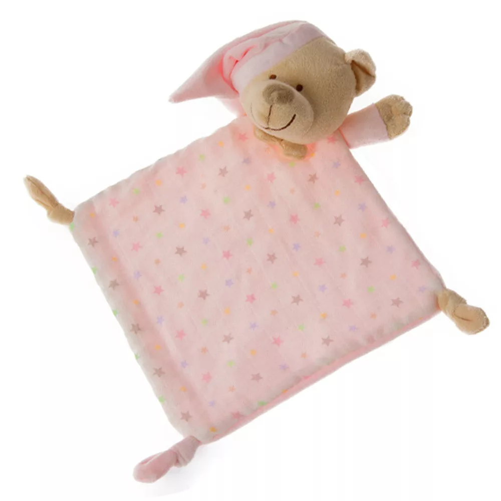Gamberritos szundikendő pamut tetra csillag mintás maci rózsaszín 10705