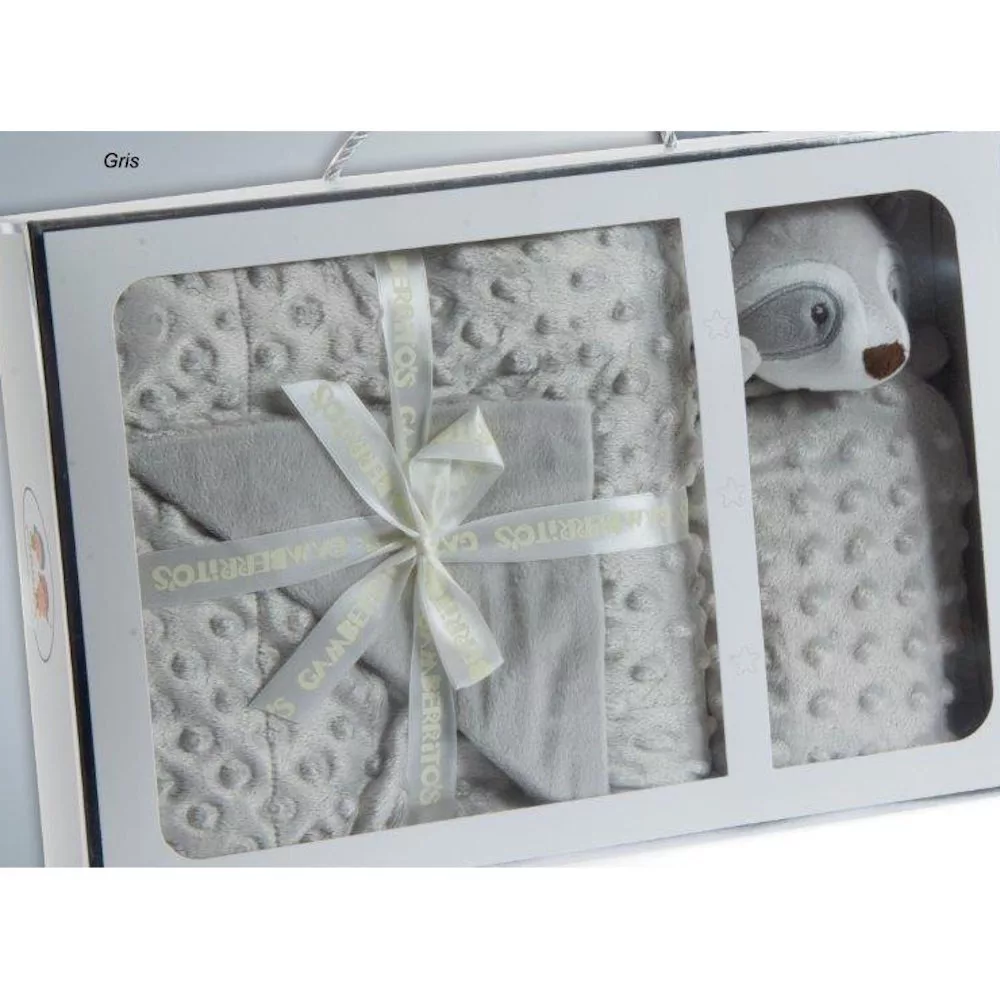 Gamberritos takaró plüss buborékos anyagú 80x110cm szundikendővel szürke mosómedve 10887