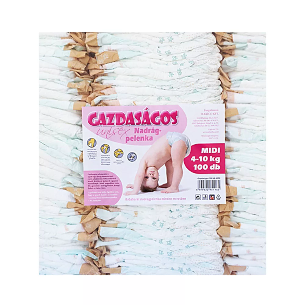 Jó minőségű, nagy kiszerelésű, tépőzáras nadrágpelenka, változatos, vidám mintákkal. A pelenkázás könnyű és gazdaságos, mivel az ára olcsó, megfizethető. Textiles borítású, légáteresztős, tépőzáras, többször nyitható, zárható. Uniszex pelenka azaz kisfiúk és kislányok egyaránt hordhatják.