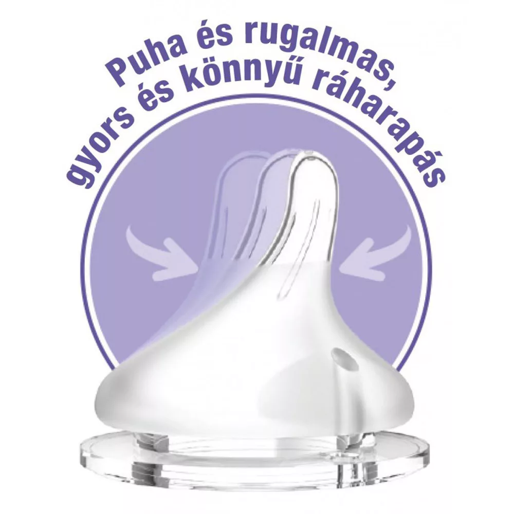– Egyedülálló, fokozatosan ívelt kialakítása lehetővé teszi a természeteshez közeli szopási folyamatot.