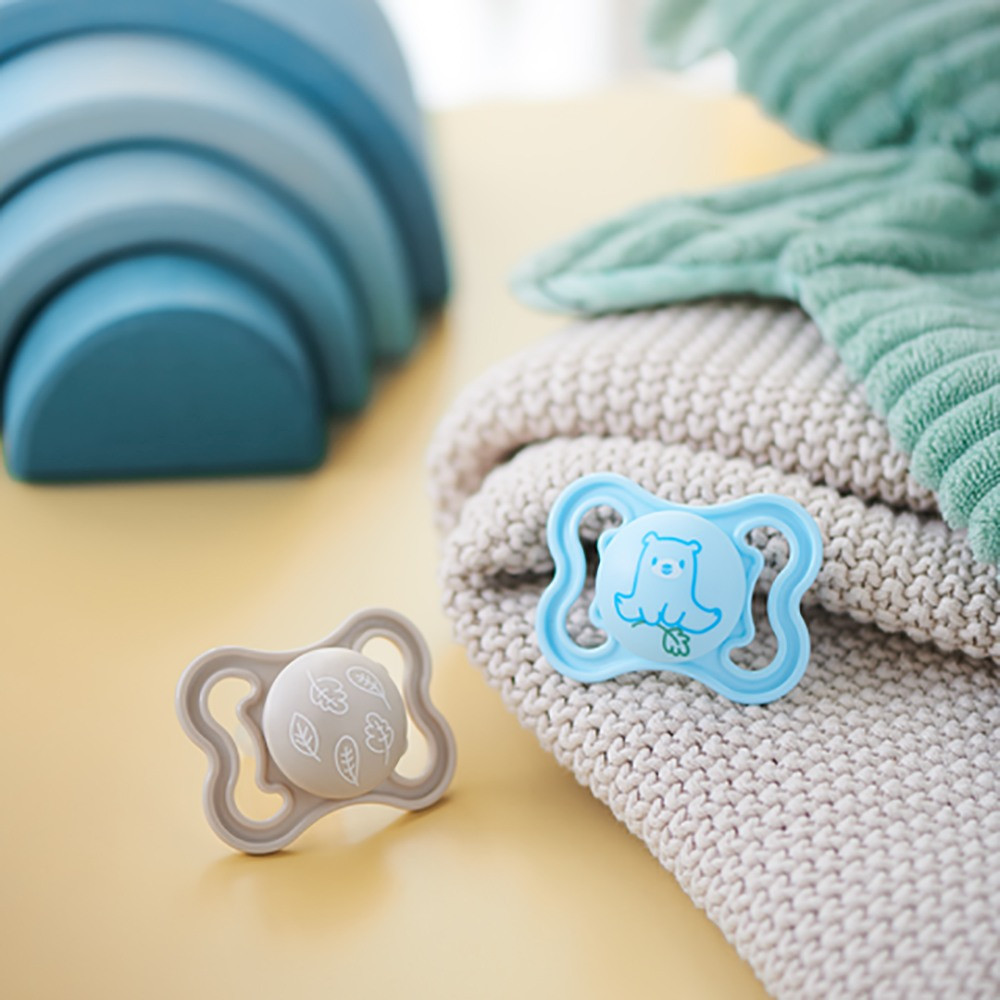 A fogdeformációk kockázatának csökkentésére kifejlesztett különösen bőrbarát cumi.