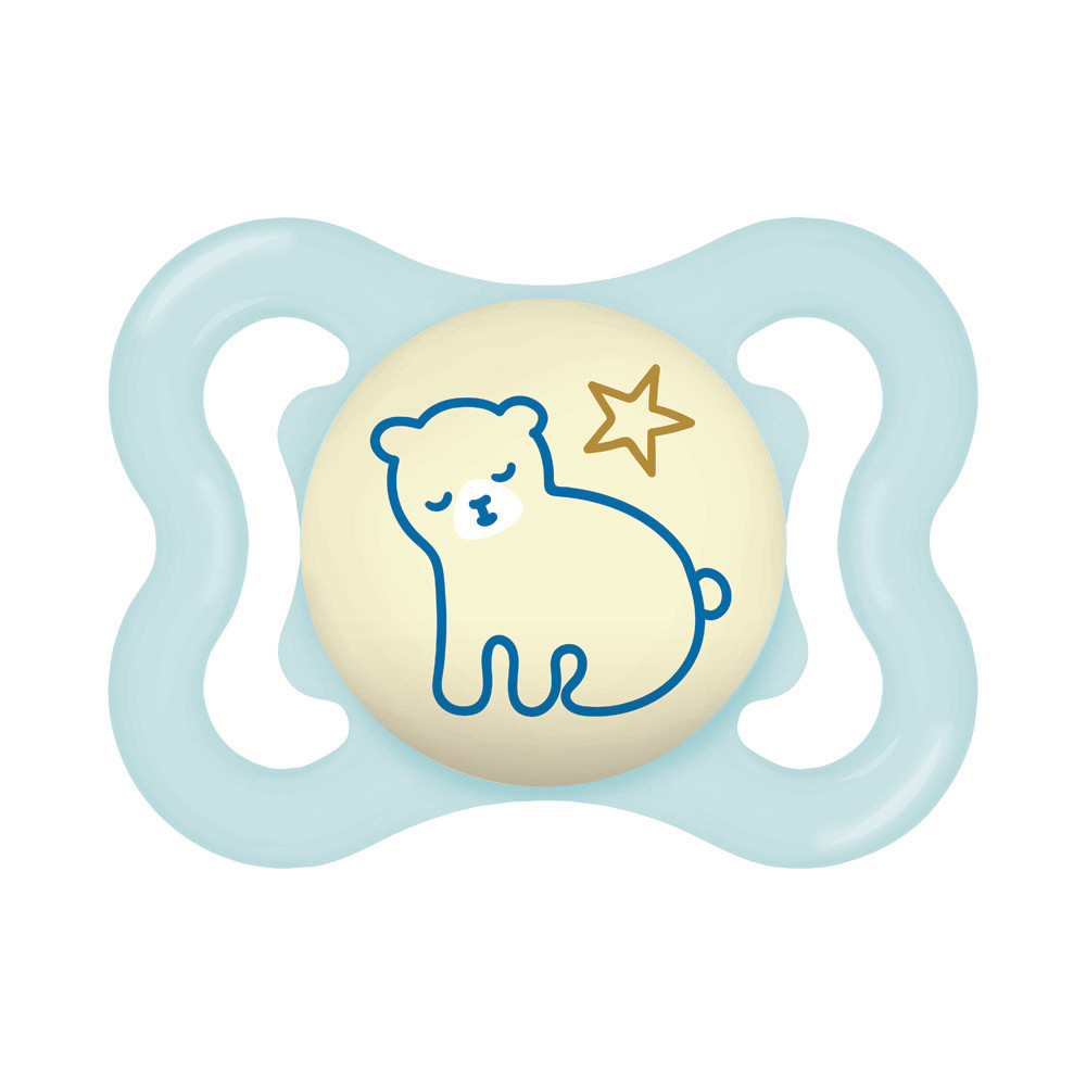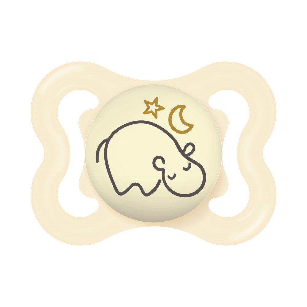 Az extra vékony és rugalmas szívóka lehetővé teszi a zárt szájtartást, hogy a babák természetes módon tudják becsukni a szájukat cumizás közben. Ez a fogaknak elegendő helyet hagy a normál növekedéshez. Az extra nagy szellőzőlyukaknak köszönhetően különösen kíméletes a babák érzékeny bőréhez. A cumi gombja világít a sötétben.