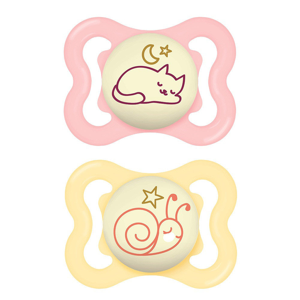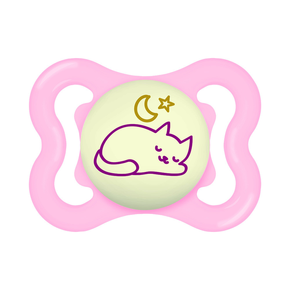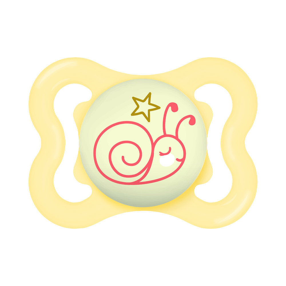 Az extra vékony és rugalmas szívóka lehetővé teszi a zárt szájtartást, hogy a babák természetes módon tudják becsukni a szájukat cumizás közben. Ez a fogaknak elegendő helyet hagy a normál növekedéshez. Az extra nagy szellőzőlyukaknak köszönhetően különösen kíméletes a babák érzékeny bőréhez. A cumi gombja világít a sötétben.