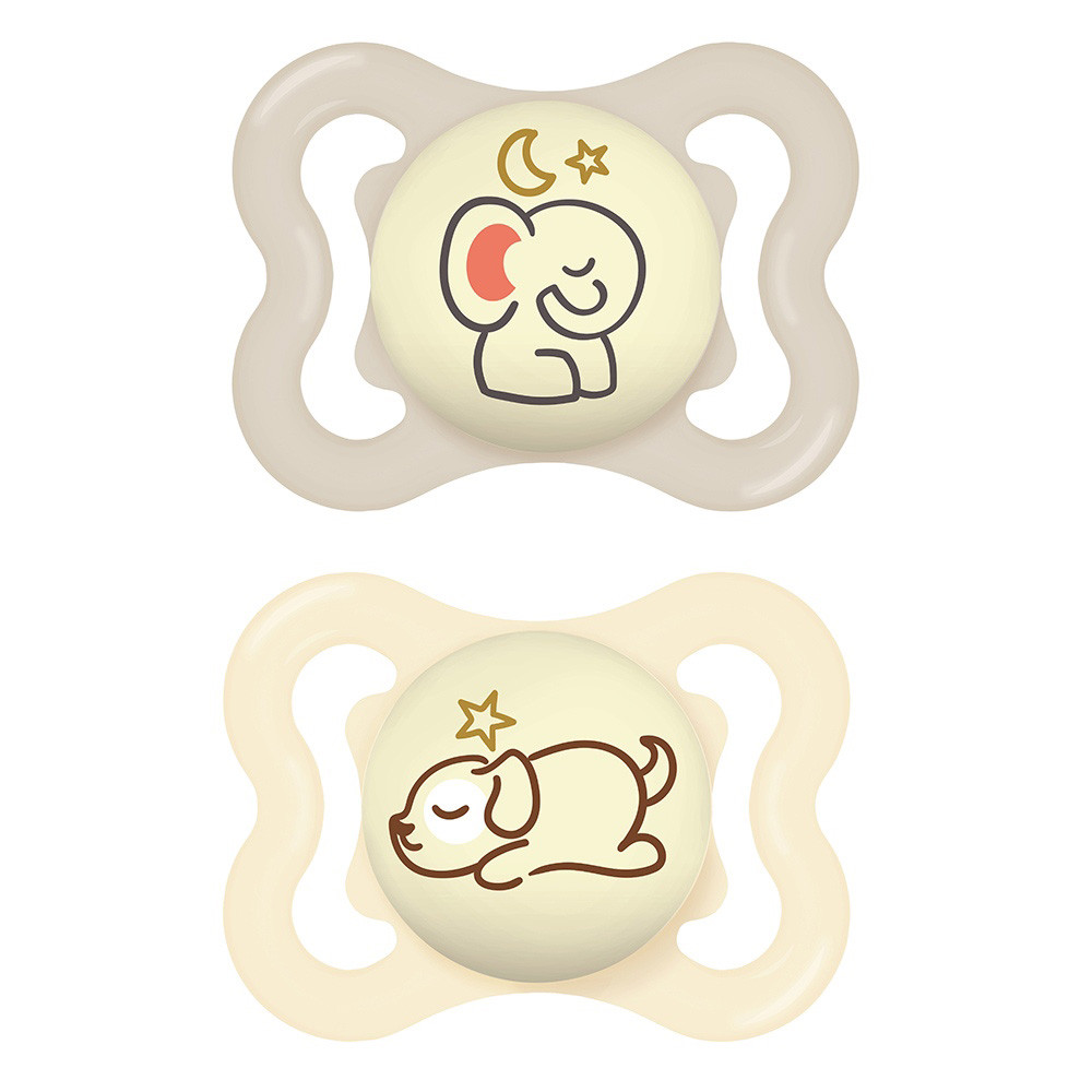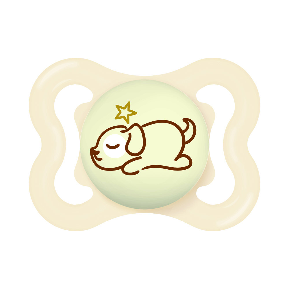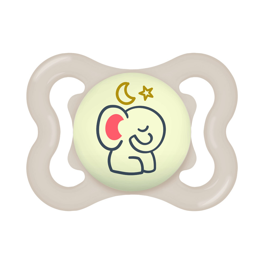 Az extra vékony és rugalmas szívóka lehetővé teszi a zárt szájtartást, hogy a babák természetes módon tudják becsukni a szájukat cumizás közben. Ez a fogaknak elegendő helyet hagy a normál növekedéshez. Az extra nagy szellőzőlyukaknak köszönhetően különösen kíméletes a babák érzékeny bőréhez. A cumi gombja világít a sötétben.