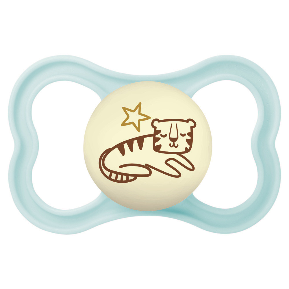 Az extra vékony és rugalmas szívóka lehetővé teszi a zárt szájtartást, hogy a babák természetes módon tudják becsukni a szájukat cumizás közben. Ez a fogaknak elegendő helyet hagy a normál növekedéshez. Az extra nagy szellőzőlyukaknak köszönhetően különösen kíméletes a babák érzékeny bőréhez. A cumi gombja világít a sötétben.