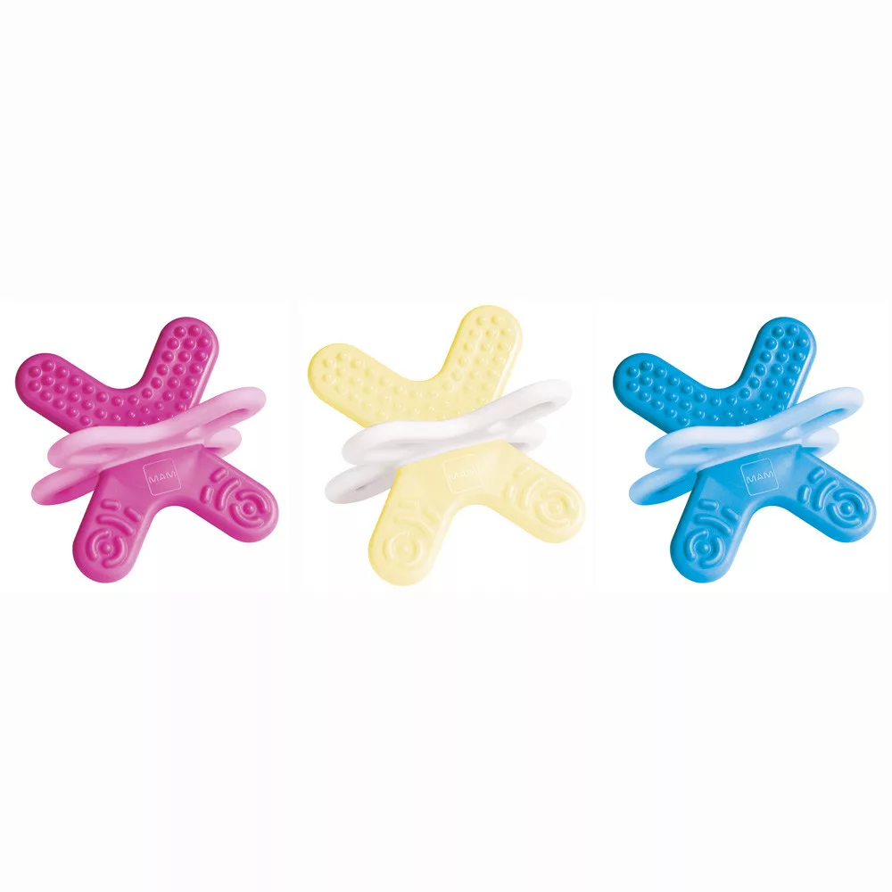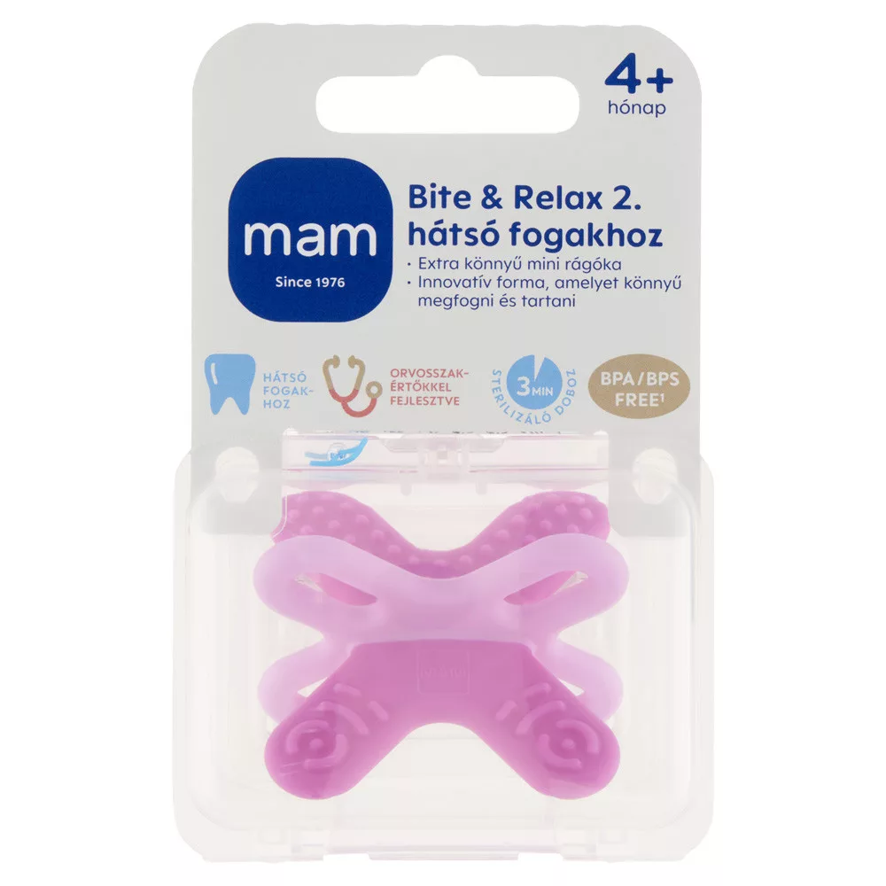 A babák második fogzási időszakához tervezett mini rágóka kifejezetten a hátsó fogakhoz alkalmas. Az innovatív 3D-formájú, extra könnyű mini rágóka kiválóan alkalmas a babák finom-motoros készségeinek fejlesztésére. A 4 különböző felületi szerkezettel, 2-féle anyagból kialakított rágóka gyengéden masszírozza a baba ínyét, és változatos rágást biztosít. Utazáshoz ideális! Praktikus sterilizáló és szállítódobozban szállítjuk.