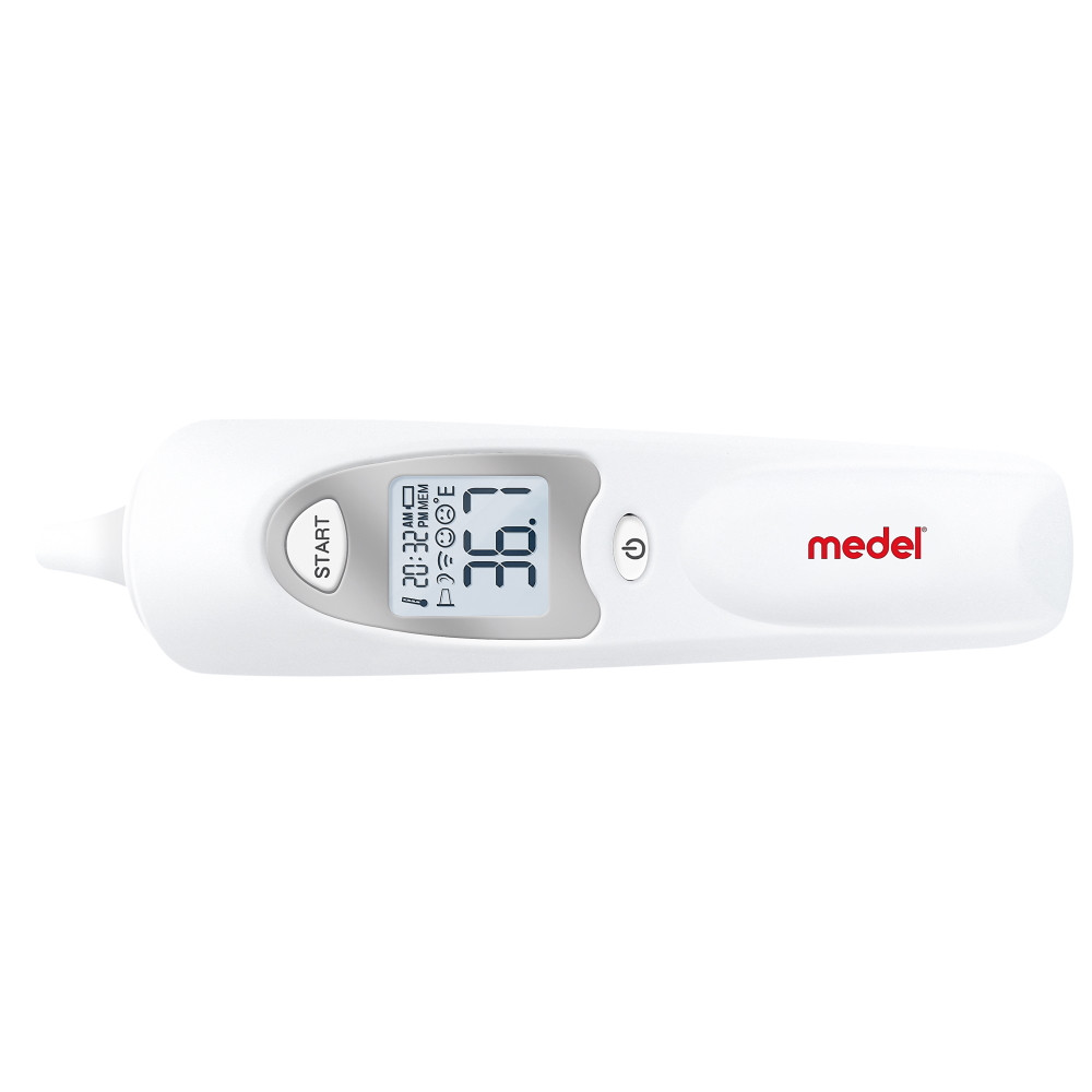 A Medel fülhőmérő csomagában 15 védőkupak található a higiénikusabb és biztonságosabb lázmérés érdekében. Néhány másodperc alatt érzékeli a hőmérsékletet a mérés végén hangjelzéssel. Más hangjelzéssel jelzi a hőemelkedést és a lázat (ha eléri a 38 °C-ot). A 38 °C-os és afeletti testhőt szomorú ikonnal, az alattit mosolygós ikonnal is jelzi.