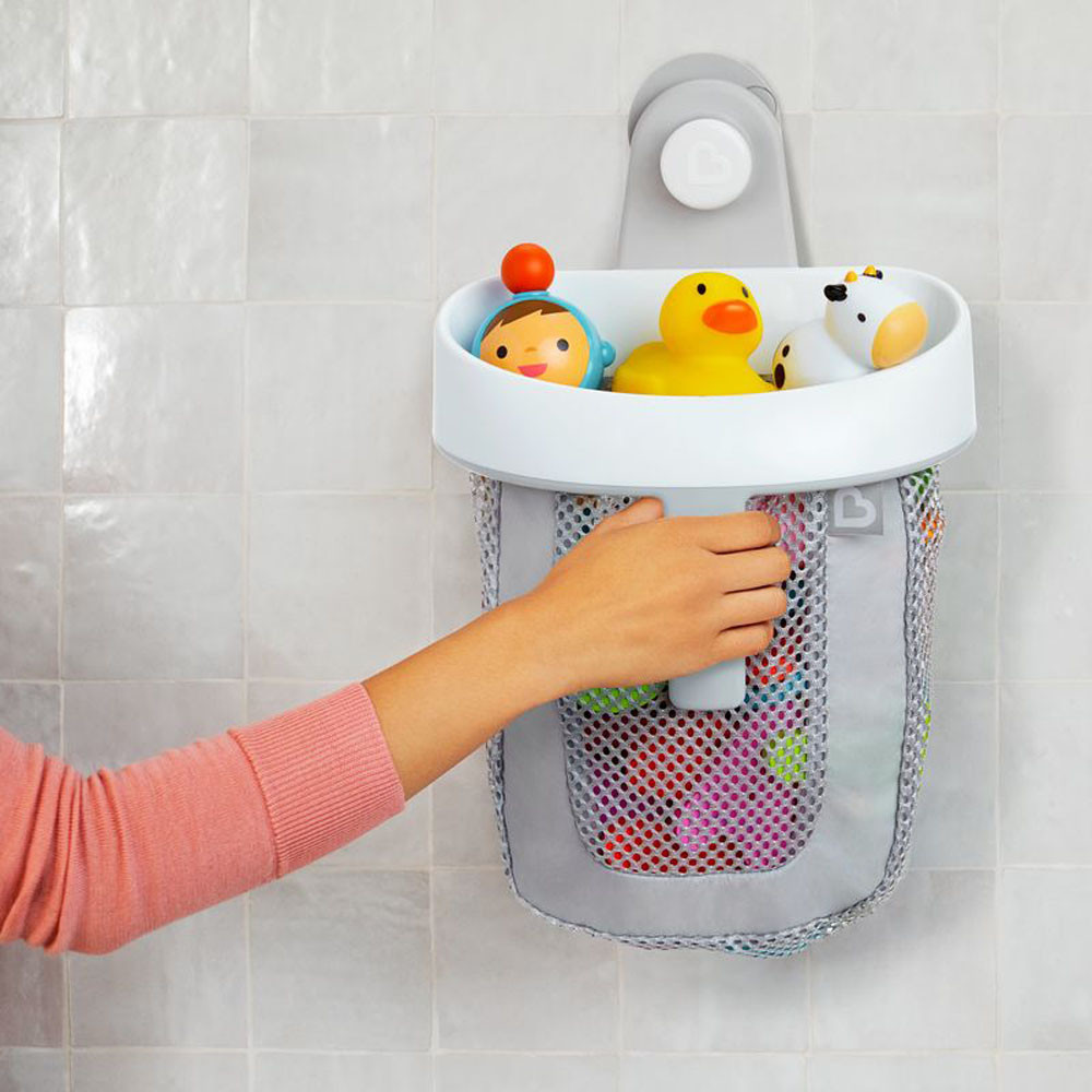A Munchkin Super Scoop fürdőjáték tároló egy valóban szuper megoldás, hogy percek alatt felszámold a fürdőkádban a káoszt. Csak emeld le a tárolót a fali tartóról és pillanatok alatt „kanalazd össze” a fürdővízből a játékokat, öblítsd le őket tiszta vízzel, majd akasztd vissza a tartót a helyére.