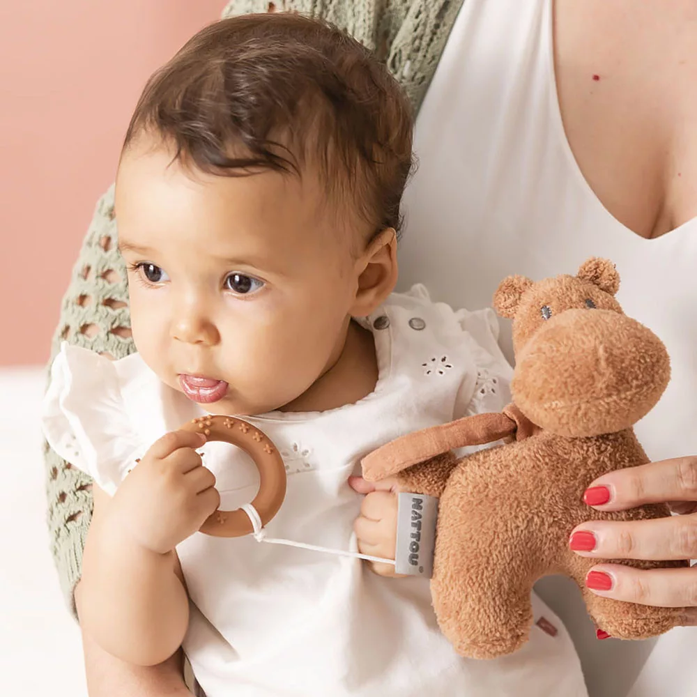 Nattou felhúzós zenélő plüss kicsi Susie and Bonnie - Susie, a víziló barna