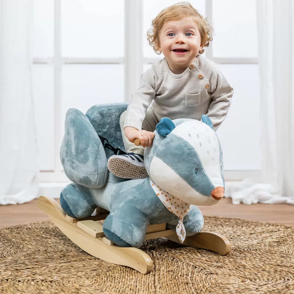 Kiváló minőségű hintázó, mely nagyon puha plüss anyagból készült testtel és biztonsági övekkel ellátott üléssel rendelkezik, amely biztosítja gyermeked számára a biztonságos szórakozást.