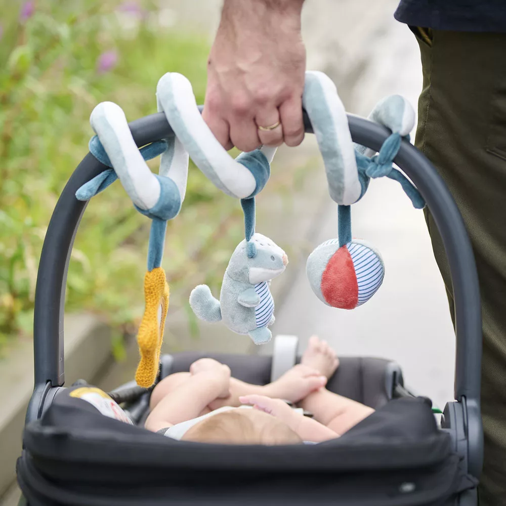 Ez a puha játékspirál szórakoztató tevékenységekkel ideális játszótárs babája számára. A különböző játékok csábításra hívják a babát, és több órányi játékidőt biztosítanak. Ez serkenti a baba fogási reflexét és hallásérzékelését. A játékspirál egyszerűen rögzíthető kiságyra, járókára vagy autósülésre. Szórakozás otthon és útközben!