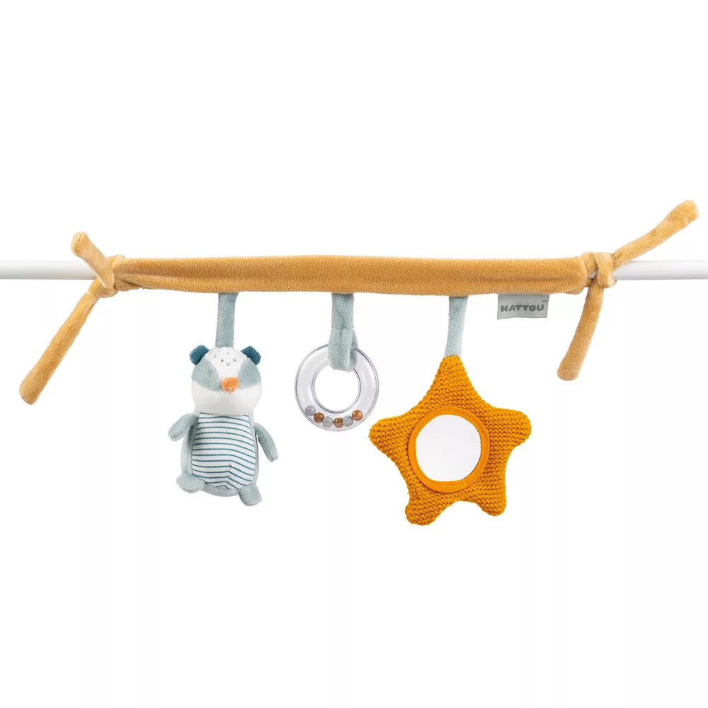 Elindulsz mész a babáddal? Ez a puha babakocsi játék leköti kicsijét útközben. Könnyen rögzítheti az akasztót a babakocsihoz vagy az autósüléshez. A maxijáték 3 szórakoztató elemet tartalmaz, így a baba élvezheti a különféle meglepetések felfedezését és megragadását. A mozgás által keltett kellemes hangok mellett serkentik a baba hallás- és mozgásfejlődését.