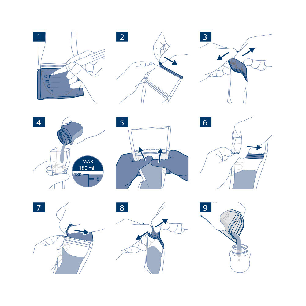 Az anyatej maximális védelme 180 ml-es anyatejtároló tasakok A Philips AVENT anyatejtároló tasakok az értékes anyatej biztonságos tárolását teszik lehetővé. Hűtőszekrényben, illetve fagyasztóban is tárolhatók, és az azonnali használat érdekében elősterilizáltak.A következőt tartalmazza: