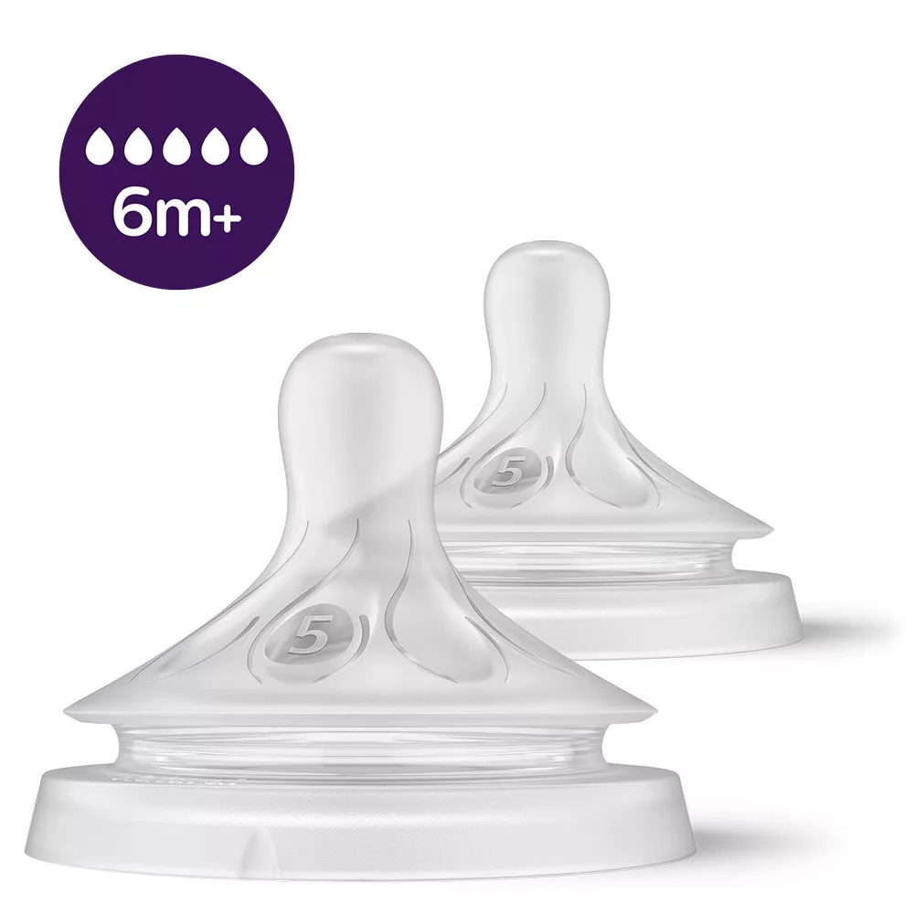 Minden baba másképp eszik, és a saját ütemében fejlődik. Különféle folyáserősségeket fejlesztettünk ki, hogy Ön megtalálhassa a gyermeke számára tökéletes változatot, és személyre szabhassa a cumisüveget. Mindegyik Natural Response etetőcumi puha szilikonból készült.