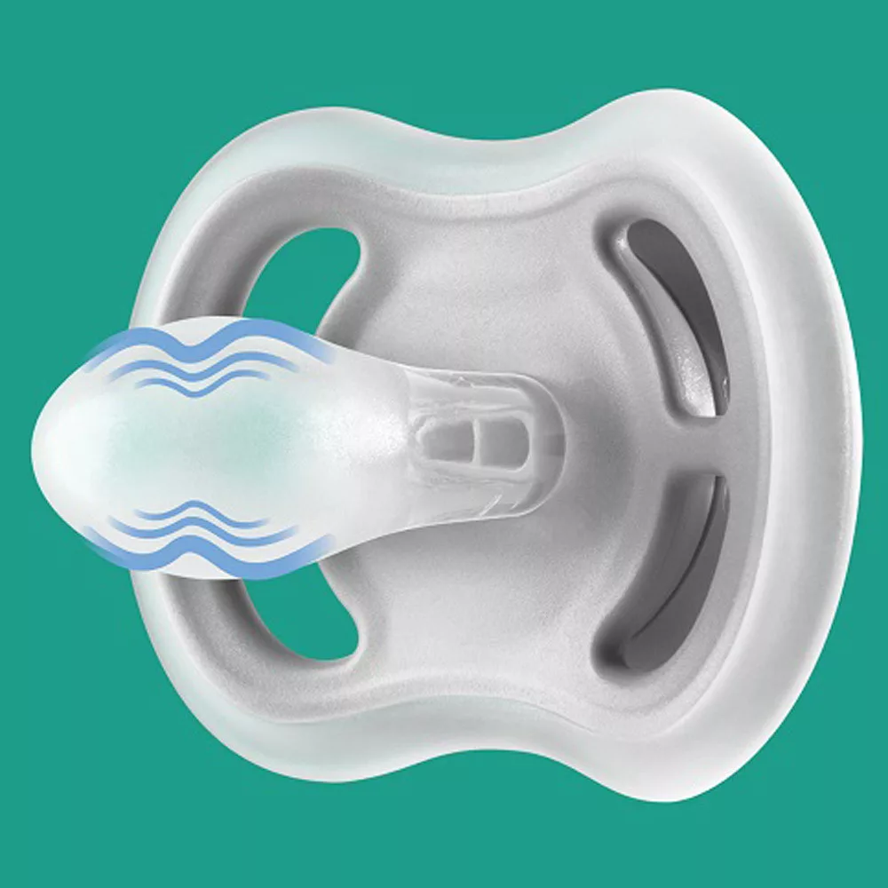 Az extra nagy levegőnyílások szellőztetik a baba bőrét, így az szárazabb marad cumizás közben.