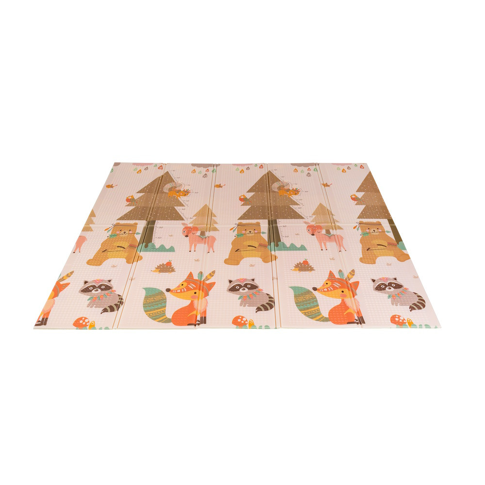A kétoldalú összehajtható szőnyeg színes és változatos mintákat és textúrákat kínál, amelyek segítik fejleszteni a babák látását és tapintását. Tele van állatok képeivel, amelyek támogatják a legfiatalabb felhasználók intellektuális és motoros fejlődését.