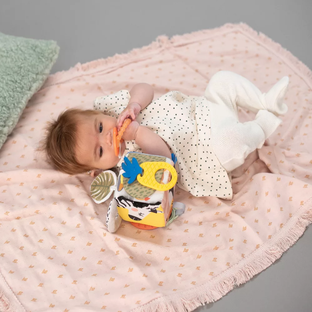A baba a Taf Toys készségfejlesztő játékkockával való játék közben fejleszti képzelőerejét, érzékszerveit és motorikus készségeit.