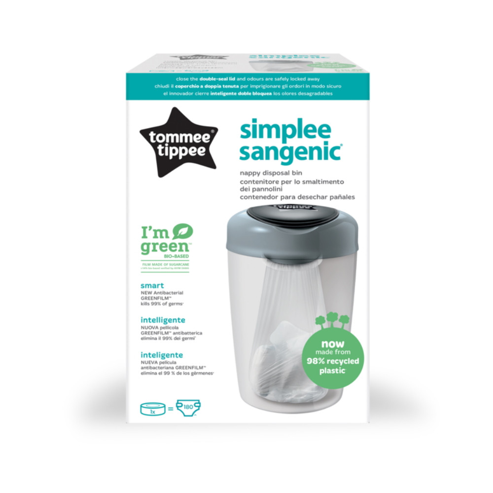 • Sokkal környezetbarátabb kivitel: a pelenkatárolók és utántöltő kazetták 98%-ban újrahasznosított illetve 100%-ban újrahasznosítható műanyagból készültek. Az antibakteriális GREENFILM™ fólia pedig növényi alapú, fenntartható forrásból származó cukornádból készült