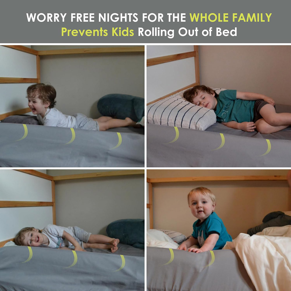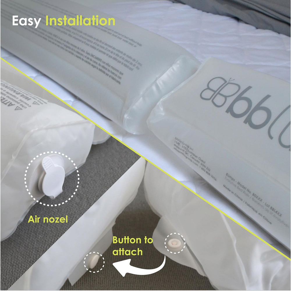 Könnyen használható – A könnyen használható , pillanatok alatt felfújhatja ezeket a leesésgátlókat a gyerekágyhoz. Két darabból álló , amelyek könnyen összeerősíthetők a még nagyobb fedés érdekében, és csúszásmentes alsó részük biztonságosan a helyén tartja őket