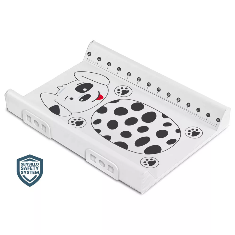 A vidám nyomatokkal ellátott Sensillo párnázott pelenkázólap a legkisebbek kényelmes gondozásának gondolatával készült. A készletben található lábak lehetővé teszik a biztonságos és stabil felszerelést közvetlenül egy 60 cm széles kiságyra. A pelenkázólap komódra vagy más stabil felületre is felszerelhető. A pelenkázóasztalt az innovatív Sensillo Safety System jellemzi, amely a kiegészítő oldalerősítéseknek köszönhetően megakadályozza a gyermek kiesését. A gyártás során a legjobb minőségű anyagokat használtuk, amelyek maximális biztonságot és kényelmet biztosítanak. A Sensillo pelenkázólap teljesen biztonságos a gyermek egészségére nézve – nem tartalmaz ftalátokat, nehézfémeket és egyéb káros anyagokat.