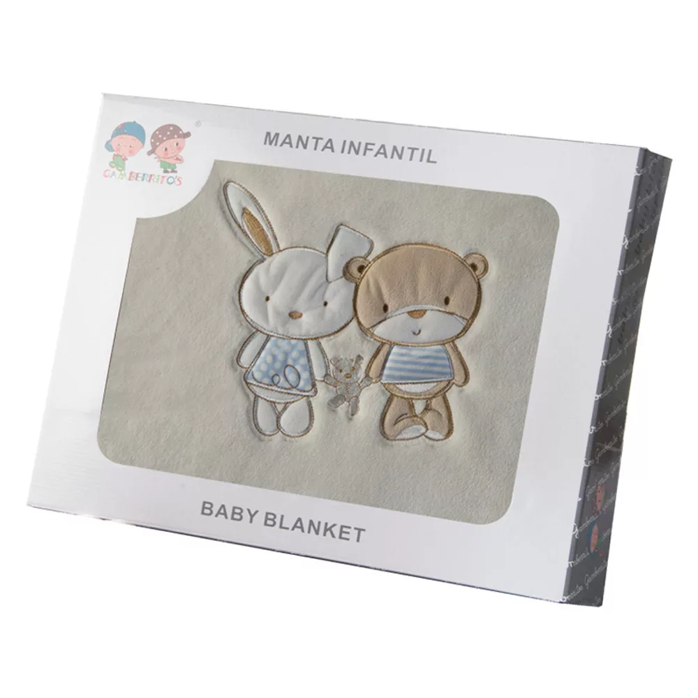 Gamberritos takaró - plüss 110x140cm maci és nyuszi kék 10601