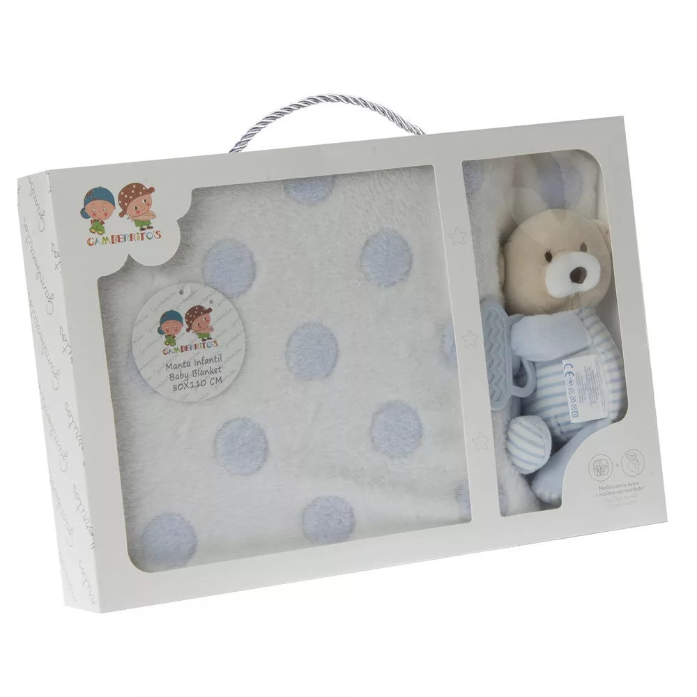 Gamberritos takaró - wellsoft 80x110cm - plüss játékkal, rágókával kék kutya 10617